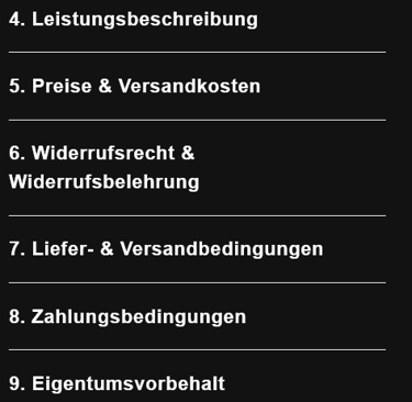 Unsere Allgemeinen Geschäftsbedingungen (AGB) regeln alle wichtigen Details rund um den Kauf unserer Produkte sowie unsere angebotenen Dienstleistungen.